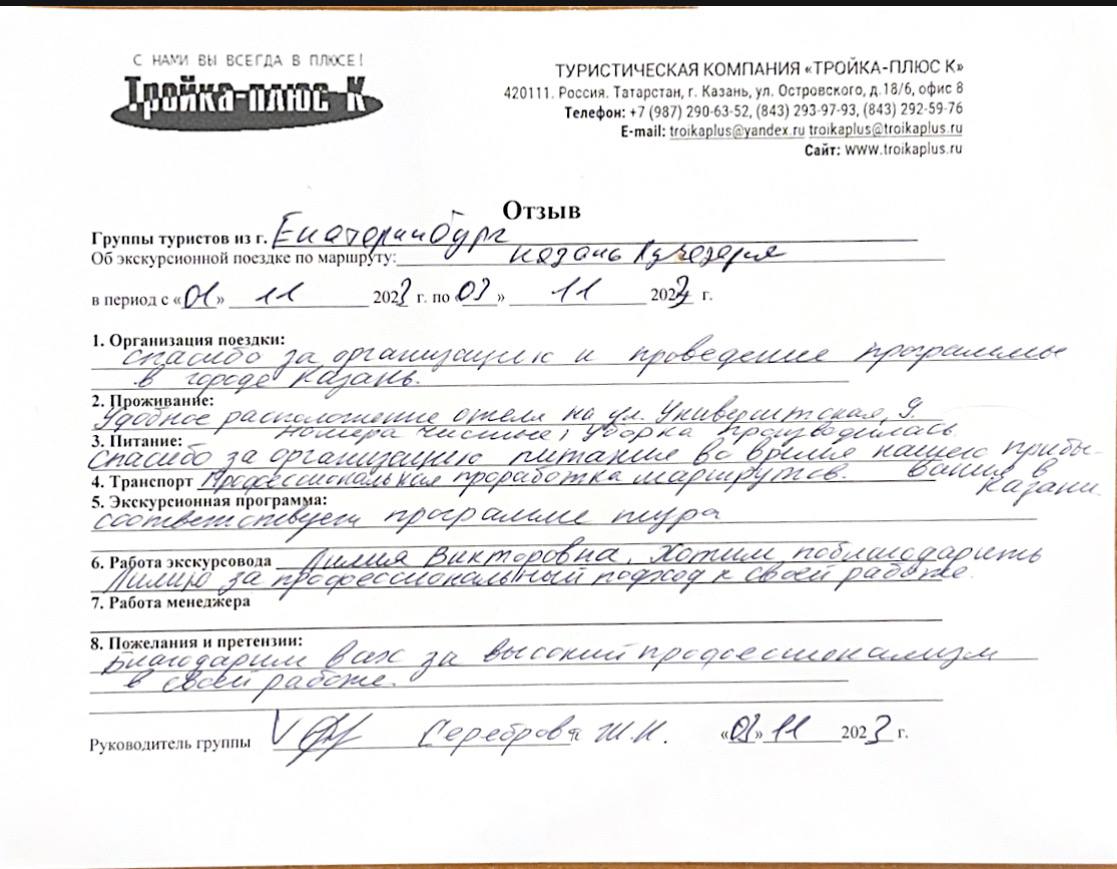 Реальные письменные отзывы туристов. Оригиналы хранятся в офисе компании.